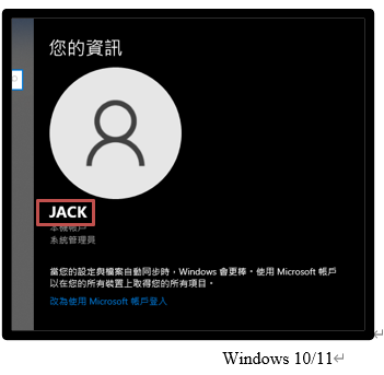 因為Windows 10/11有Microsoft 帳戶與本機帳戶兩種類型,若使用本機帳戶為Administrator、Guest請新增其他帳戶登入。此兩組帳號為資安法規定需停用的預設帳號。請按照下列步驟查看Windows 10/11的使用者帳戶名稱。