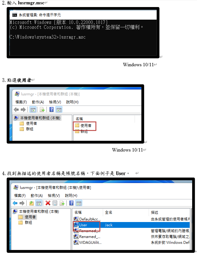 Q1: 如何查看Windows 10/11的使用者帳戶名稱: