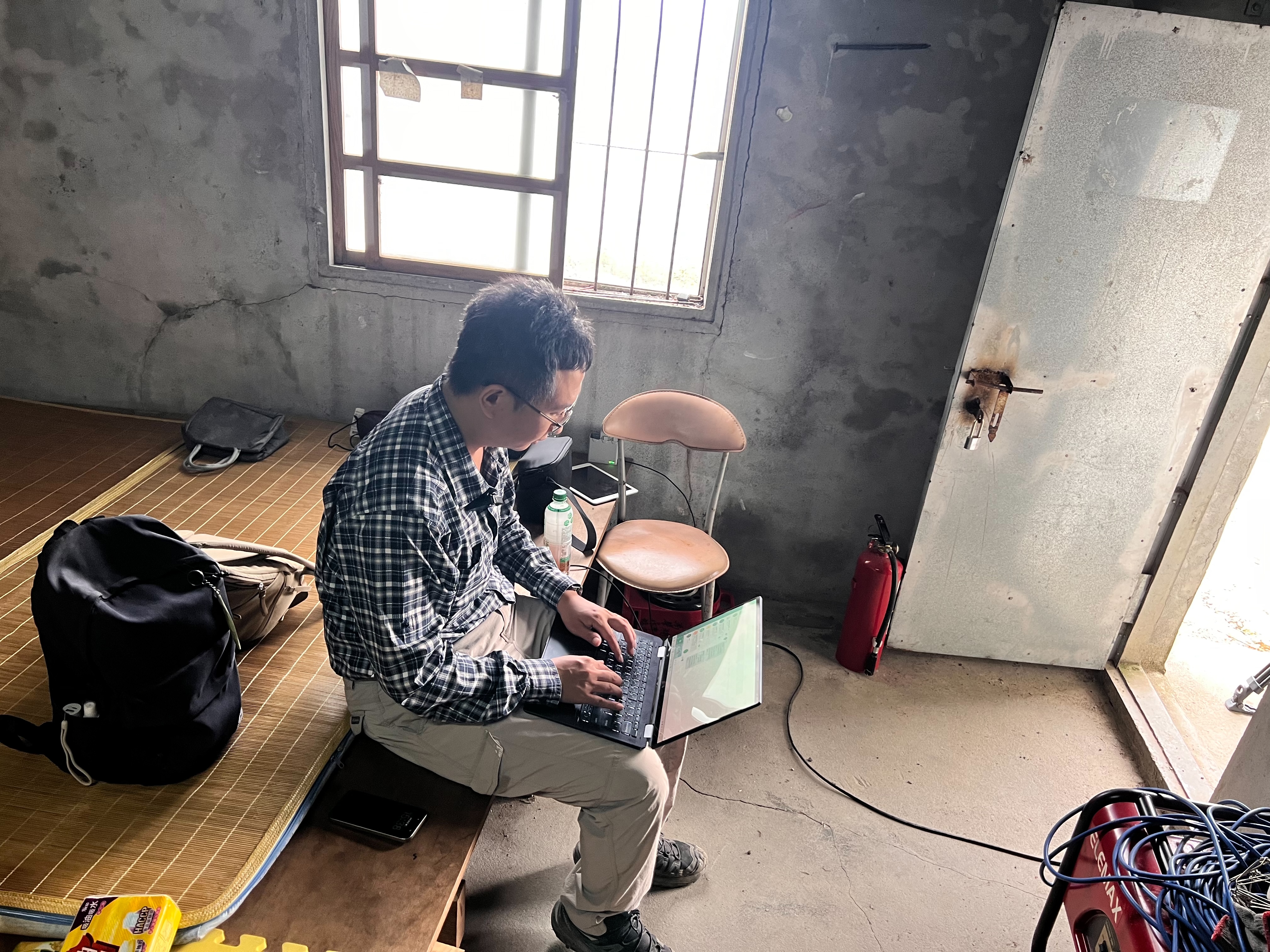 在第一線守護的,是中心助理研究員李國維。他於颱風來襲前夕9月22日即提前進駐光復林道16K觀測所,日夜監測湖體變化。災情發生後,他不眠不休,在海拔超過一千公尺、晚上依賴發電機供電的艱困環境下,與4位護管員持續將即時數據傳回,協助相關單位判斷潰壩後的穩定性,展現研究人員的責任與使命。