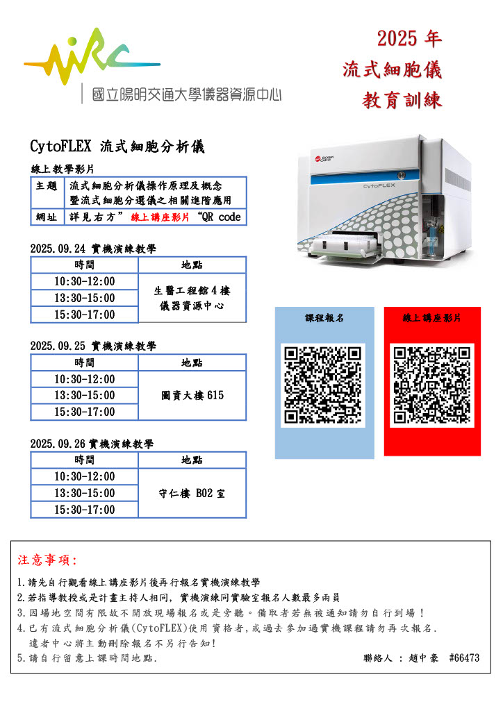 [陽明校區] 2025 流式細胞儀教育訓練-CytoFLEX 細胞分析儀