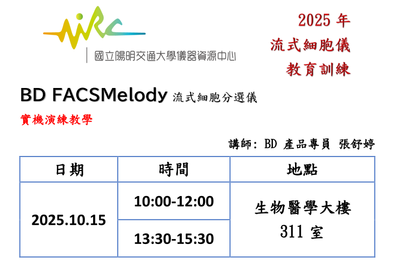 [陽明校區] 2025 流式細胞儀教育訓練_分選儀進階課程