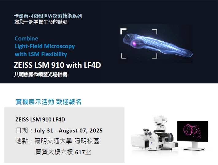 ZEISS LSM910 with LF4D 共軛焦顯微鏡暨光場相機展示活動